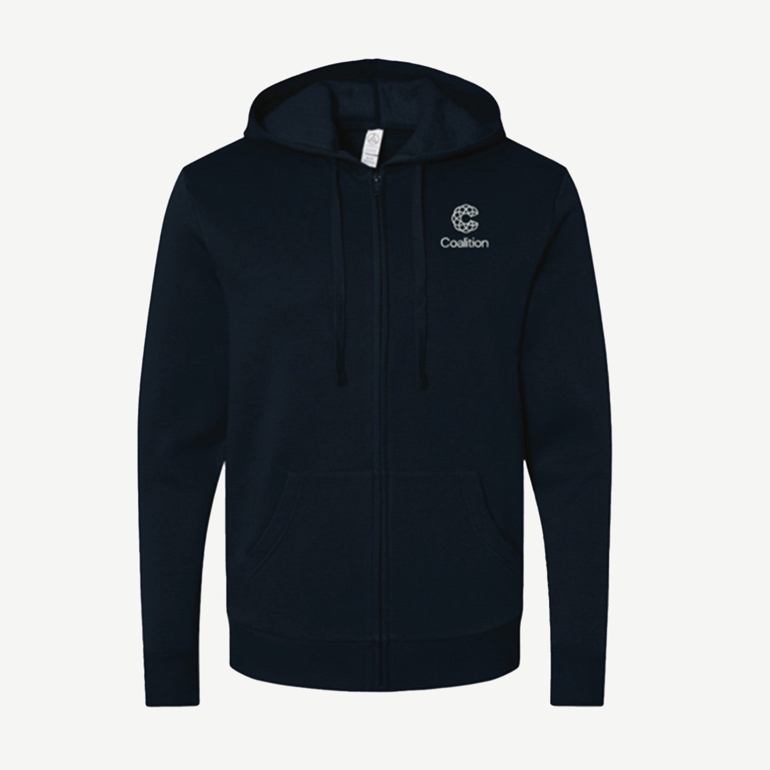 Unisex Navy Full Zip Hoodie with White Coalition Logo